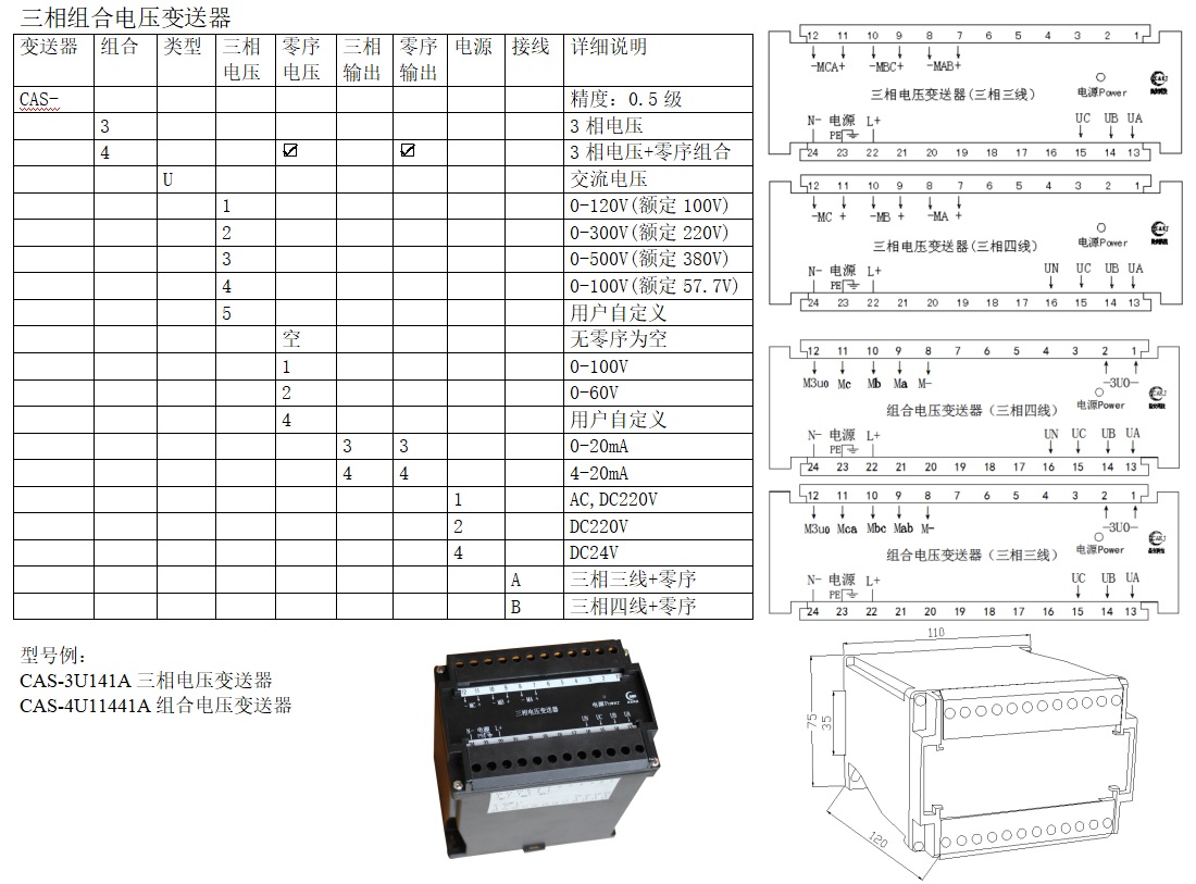 CAS-U141交流電壓變送器是將被測交流電壓信號轉(zhuǎn)換成按線性比例輸出直流電流并隔離的設(shè)備,配以相應(yīng)的指示儀表或裝置是電力系統(tǒng)、遠(yuǎn)動裝置、自動化控制系統(tǒng)等必需的模擬量采集模塊。