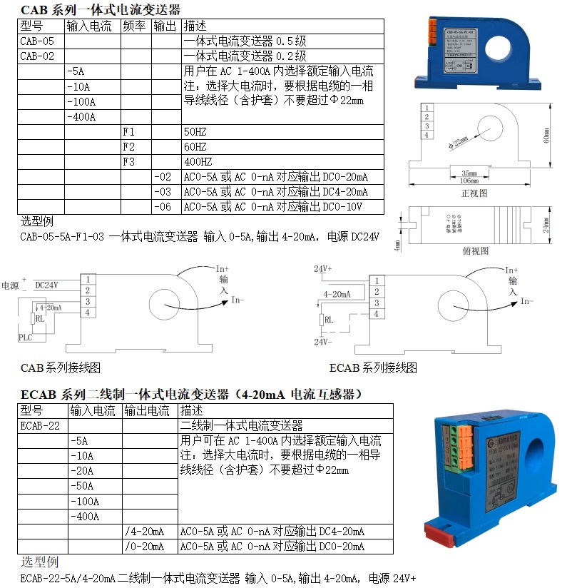 規(guī)范:0-200A/4-20mA,電源AC/DC220V