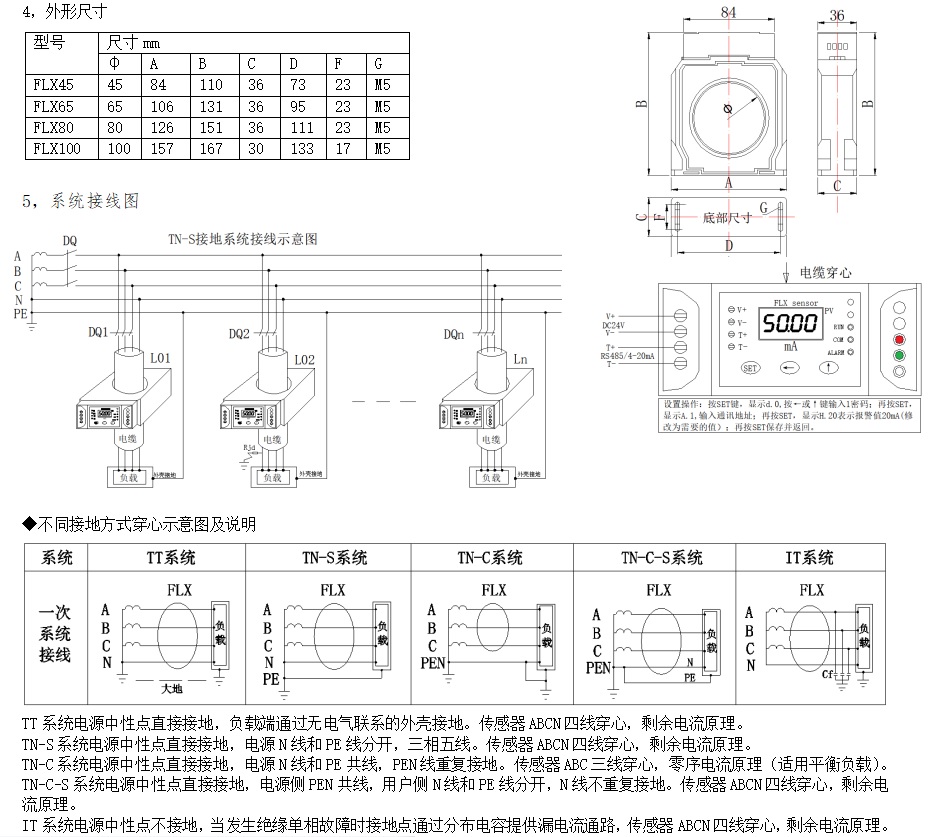 FLX系列智能漏電流絕緣傳感器,采用剩余電流或零序電流原理監(jiān)測電力高低壓回路單相接地漏電流,并以數(shù)字形式(485通訊)或模擬量形式(4-20mA)為零序小電流數(shù)據(jù)采集提供有效信息。可作為絕緣在線監(jiān)測故障定位傳感器、小電流接地選線裝置的小電流采集模塊。