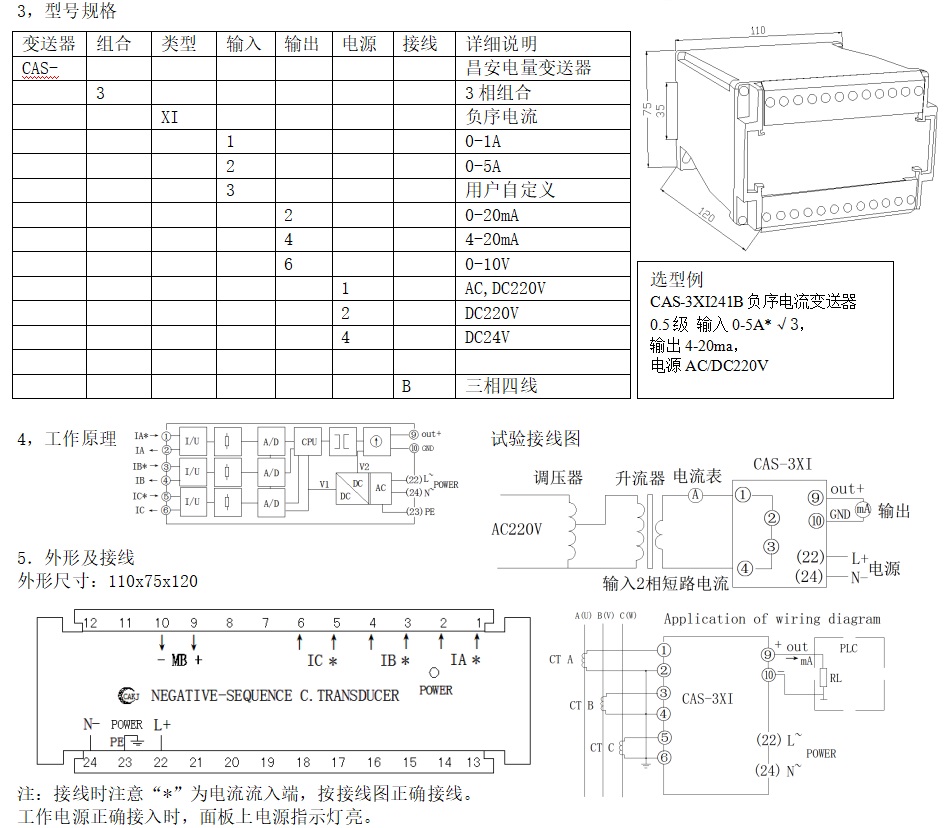 CAS系列負(fù)序電量變送器是采集系統(tǒng)三相電流、電壓信號,計算出線路中的負(fù)序電流或電壓量,再轉(zhuǎn)換成按線性比例輸出直流電流、電壓并隔離的設(shè)備。