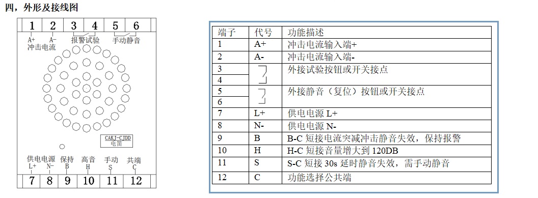 沖擊報(bào)警:電笛聲、電鈴聲;音量:120DB高低音可控